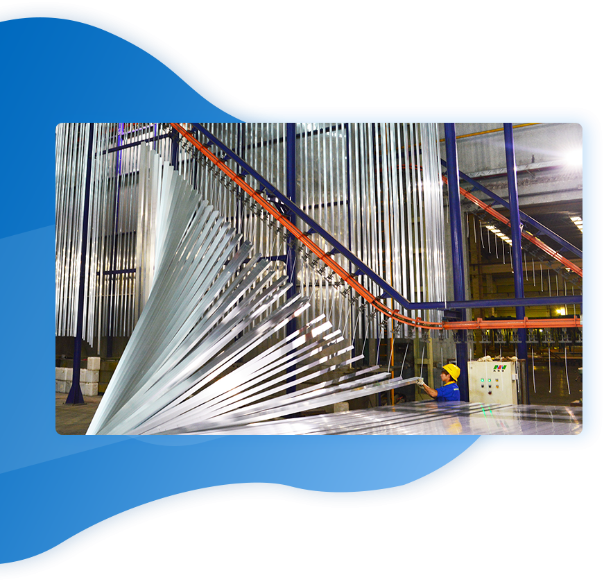 新利国际手机版生产工序齐全,包括有熔铸,挤压,阳极氧化着色,电泳涂漆,粉末喷涂,氟碳喷涂,木纹喷涂,穿条隔热,深加工,精加工,电抛光等主要生产工序。各车间工序均配备具有世界先进水平的各种生产设备。